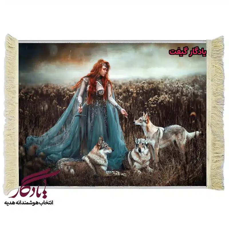 تابلو فرش ماشینی طرح دوشیزه و سگ گرگ کد d19