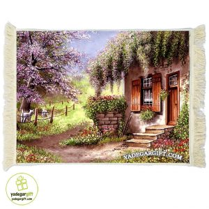 تابلو فرش ماشینی طرح منظره خانه در باغ کد m14